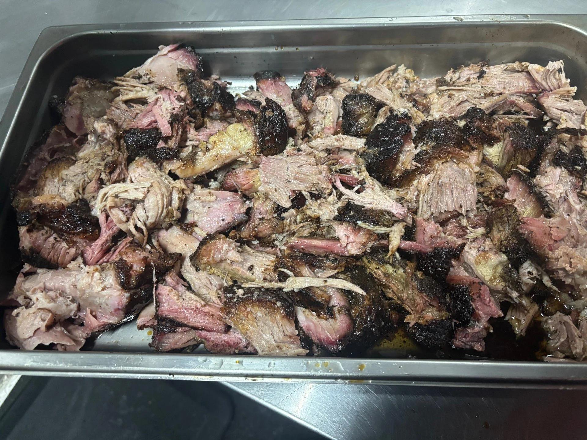 Hand‑pulled pork shoulder, seasoned and smoked to tender perfection